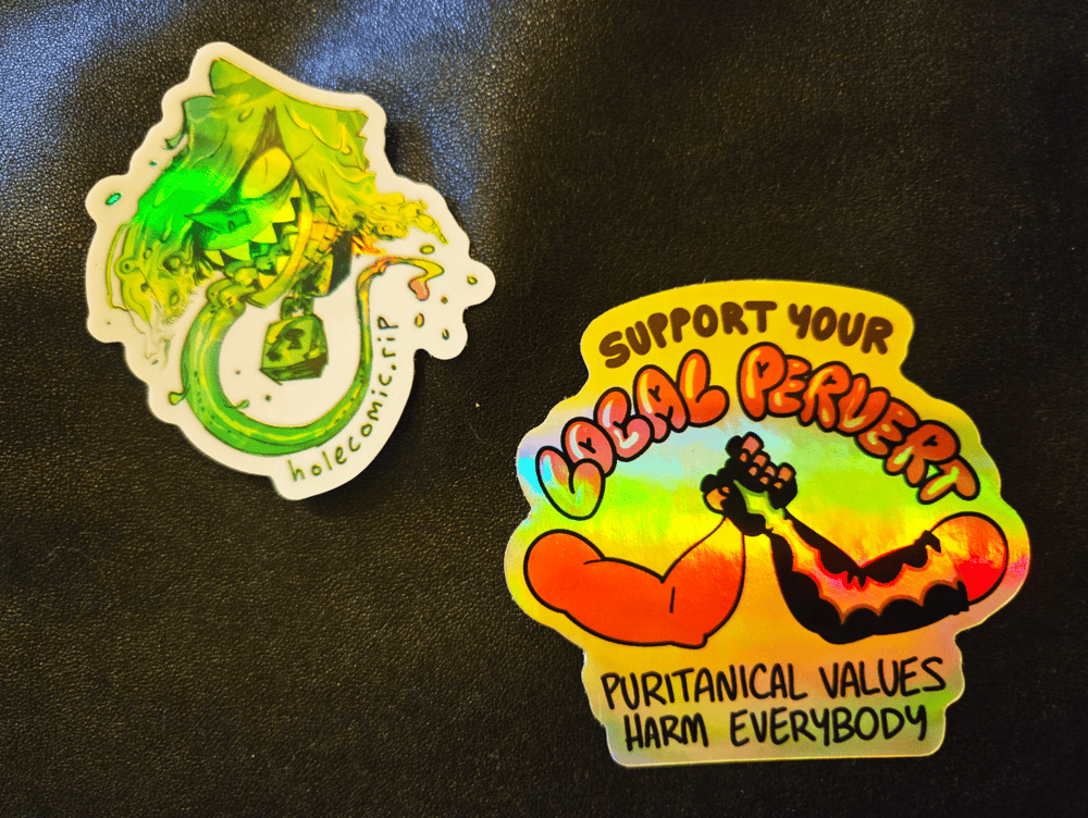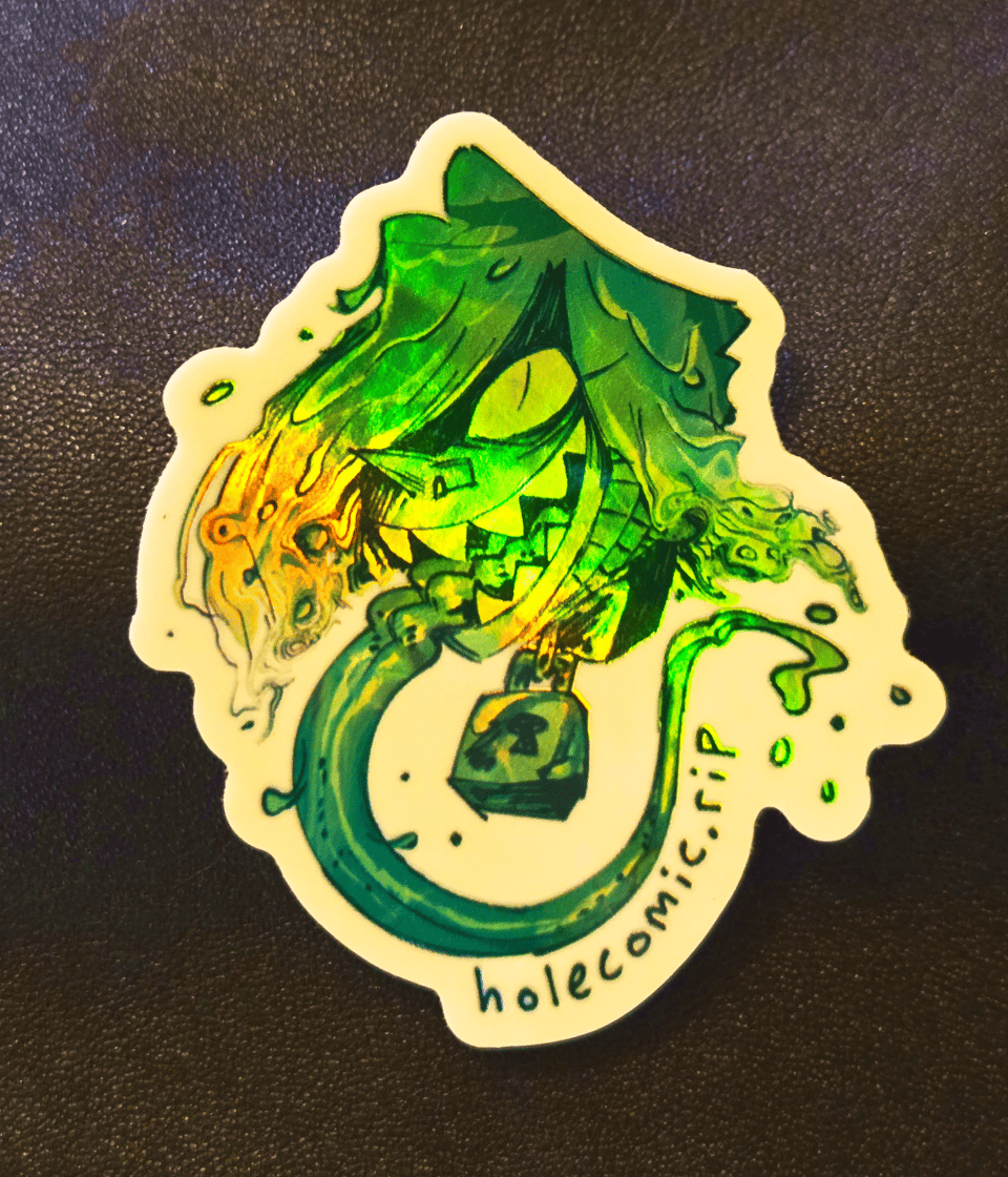 A holographic 2.5"x3" vinyl sticker of the ghastly apparition of Nat as she appears in the webcomic Hole. Currently the only merch for the comic and a great way to show your support!